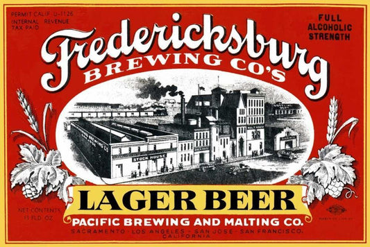 Fredericksburg Brewing Co.s Lager Beer Black Ornate Wood Framed Art Print with Double Matting by Vintage Booze Labels