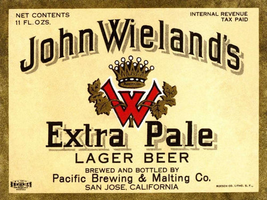 John Wielands Extra Pale Lager Beer Black Ornate Wood Framed Art Print with Double Matting by Vintage Booze Labels