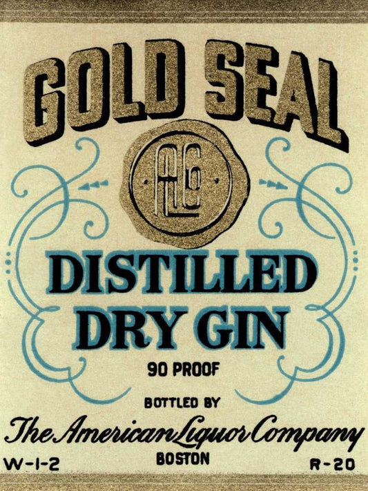 Gold Seal Distiller Dry Gin Black Ornate Wood Framed Art Print with Double Matting by Vintage Booze Labels