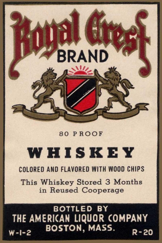 Royal Crest Brand Whiskey Black Ornate Wood Framed Art Print with Double Matting by Vintage Booze Labels