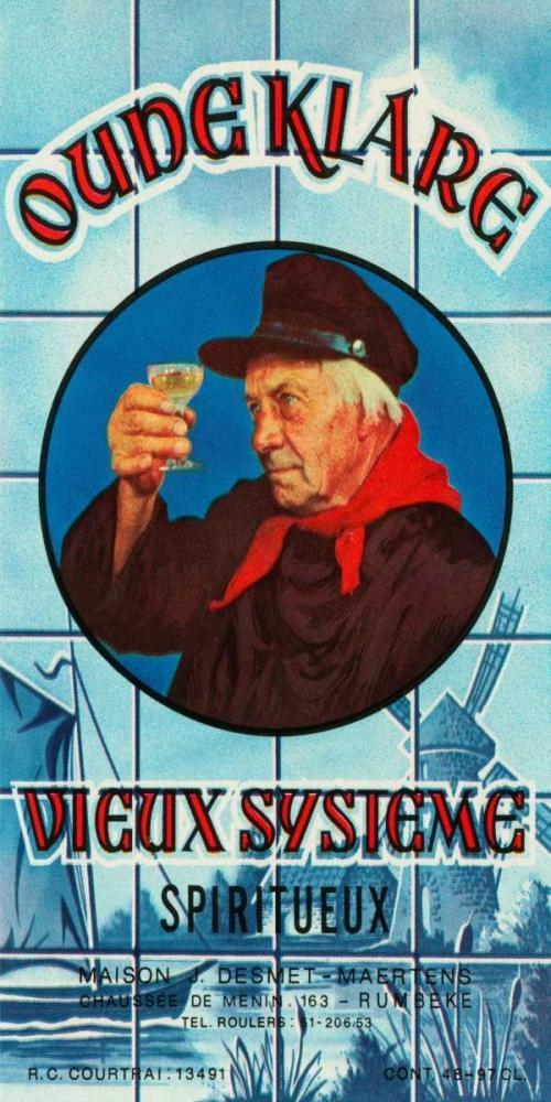 Oudeklare Vieux Systeme Spiritueux Black Ornate Wood Framed Art Print with Double Matting by Vintage Booze Labels