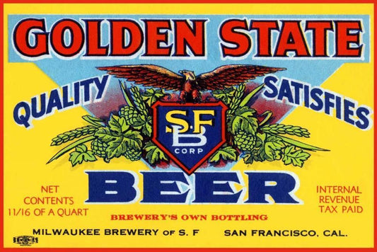 Golden State Beer Black Ornate Wood Framed Art Print with Double Matting by Vintage Booze Labels