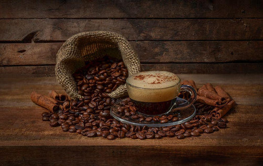 Coffee Beans White Modern Wood Framed Art Print with Double Matting by Ronaldnovianus