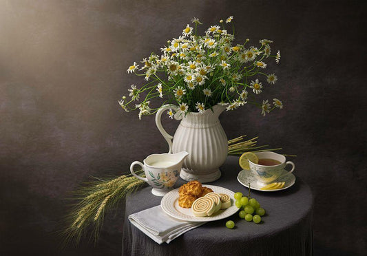 Afternoon Tea White Modern Wood Framed Art Print with Double Matting by L., Binbin