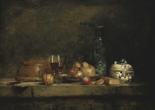 The Jar of Olives Black Ornate Wood Framed Art Print with Double Matting by Chardin, Jean-Baptiste-Simeon