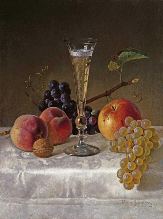 Still Life With Glass of Champagne Black Ornate Wood Framed Art Print with Double Matting by Ramsay, Milne
