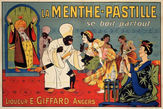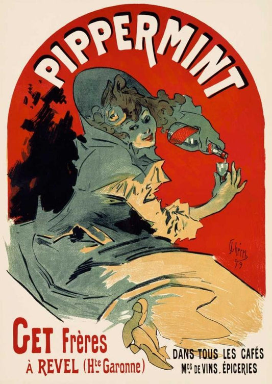 Pippermint Black Ornate Wood Framed Art Print with Double Matting by Cheret, Jules
