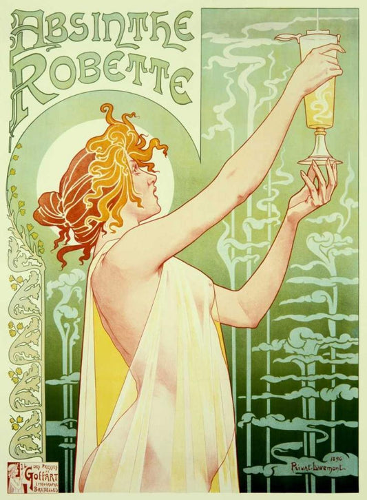 Absinthe Robette Black Ornate Wood Framed Art Print with Double Matting by Livemont, Privat