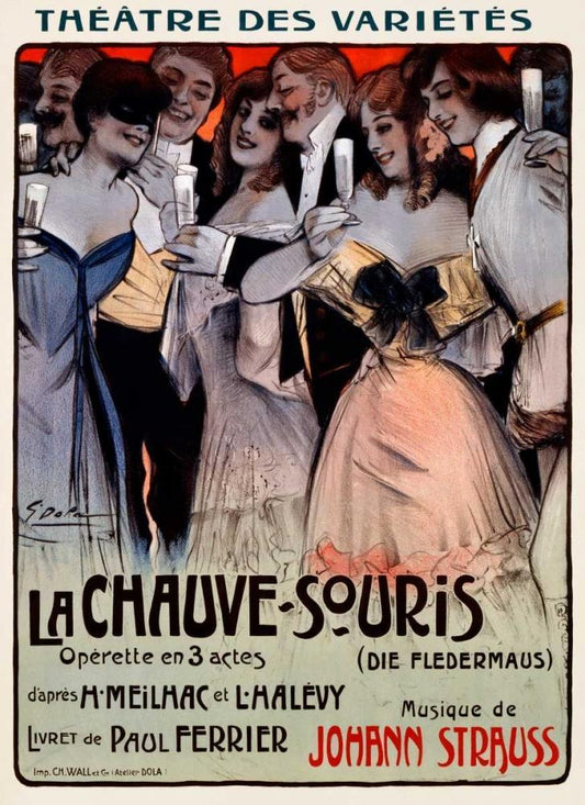 La Chauve-Souris/Der Fledermaus Black Ornate Wood Framed Art Print with Double Matting by Dola, Georges