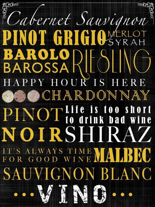 Wine Signs Black Ornate Wood Framed Art Print with Double Matting by Wolk, Lisa