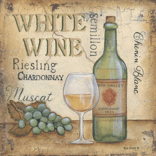 White Wine Black Ornate Wood Framed Art Print with Double Matting by Lewis, Kim
