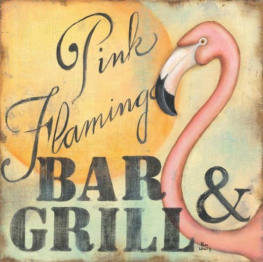 Pink Flamingo Black Ornate Wood Framed Art Print with Double Matting by Lewis, Kim