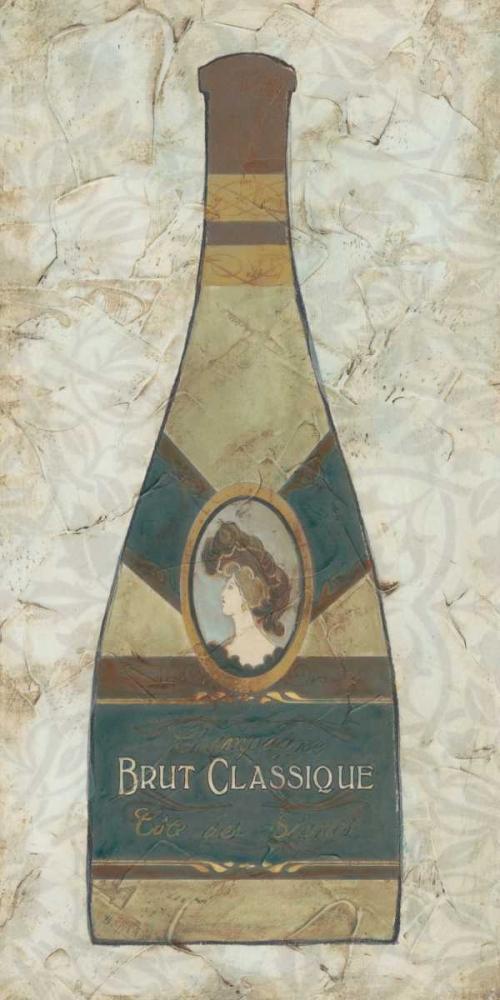 Vintage Champagne I Black Ornate Wood Framed Art Print with Double Matting by Vess, June Erica