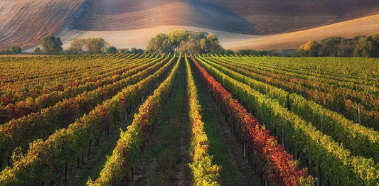 Vineyard In Autumn White Modern Wood Framed Art Print with Double Matting by Komovec, Ales