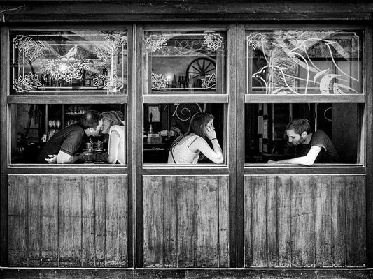 Together At The Bar White Modern Wood Framed Art Print with Double Matting by Hawerkamp, Hans-Wolfgang