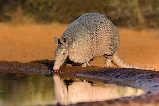 Nine-banded Armadillo-Dasypus novemcinctus-drinking White Modern Wood Framed Art Print with Double Matting by Ditto, Larry