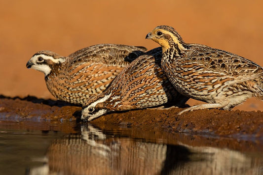 Northern Bobwhite-Colinus virginianus-drinking White Modern Wood Framed Art Print with Double Matting by Ditto, Larry