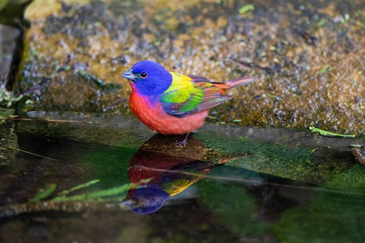 Painted Bunting-Passerina ciris-in spring White Modern Wood Framed Art Print with Double Matting by Ditto, Larry