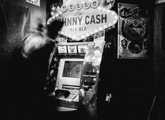Hello Im Johnny Cash White Modern Wood Framed Art Print with Double Matting by Walkthecamera