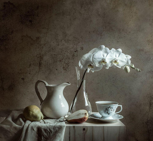 Tea Of September White Modern Wood Framed Art Print with Double Matting by Aristov, Stanislav