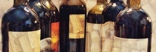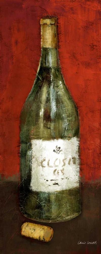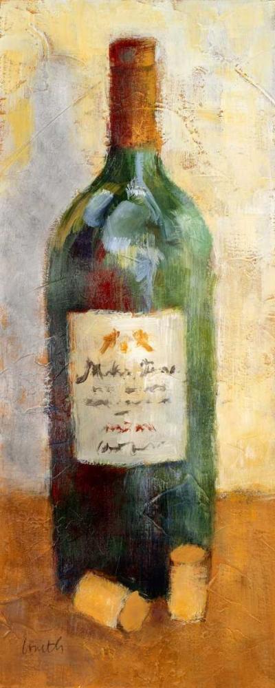 White Wine and Cork I (red background) Black Ornate Wood Framed Art Print with Double Matting by Loreth, Lanie