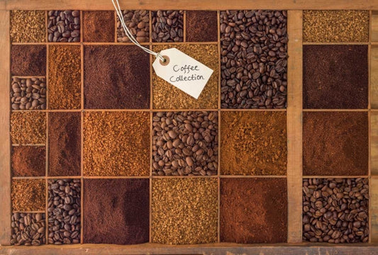 Variety of coffee beans in a wooden box White Modern Wood Framed Art Print with Double Matting by Frank, Assaf