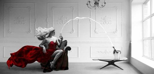Champagne Zoom White Modern Wood Framed Art Print with Double Matting by Lauren