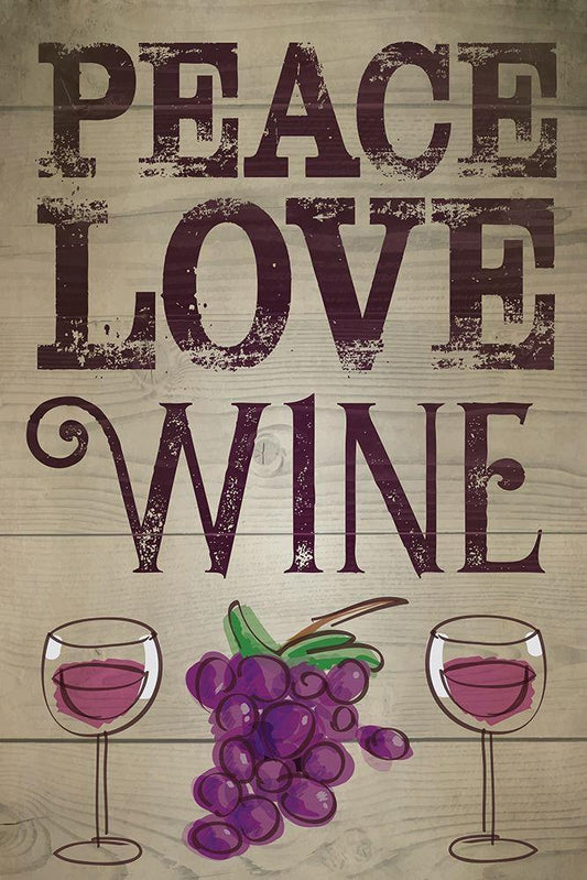 Peace, Love, Wine White Modern Wood Framed Art Print with Double Matting by ND Art
