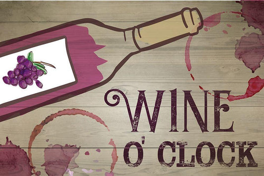 Wine O Clock White Modern Wood Framed Art Print with Double Matting by ND Art