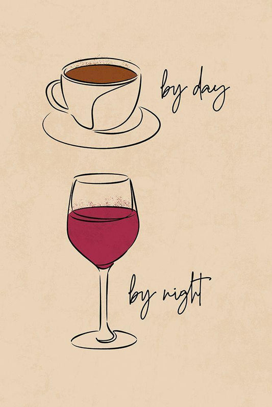 Coffee then Wine White Modern Wood Framed Art Print with Double Matting by JJ Design House