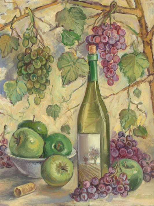 Wine with Apples White Modern Wood Framed Art Print with Double Matting by Kasun, Theresa
