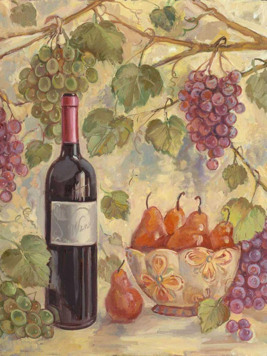 Wine with Pears White Modern Wood Framed Art Print with Double Matting by Kasun, Theresa