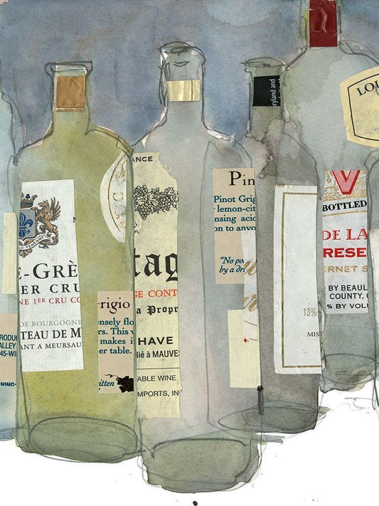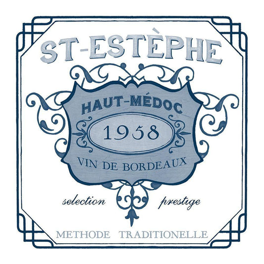 Indigo Wine Labels IV White Modern Wood Framed Art Print with Double Matting by Vess, June Erica