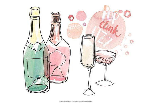Champagne Wishes I White Modern Wood Framed Art Print with Double Matting by Parker, Jennifer Paxton