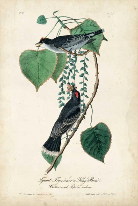 Flycatcher and King Bird White Modern Wood Framed Art Print with Double Matting by Audubon, John James