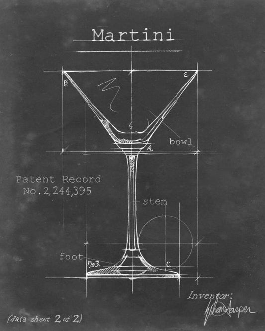 Barware Blueprint I White Modern Wood Framed Art Print with Double Matting by Harper, Ethan