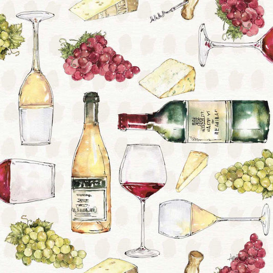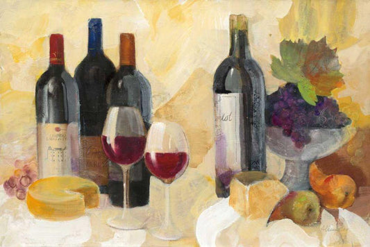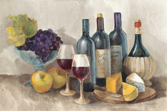 Wine and Fruit I v2 Light White Modern Wood Framed Art Print with Double Matting by Hristova, Albena