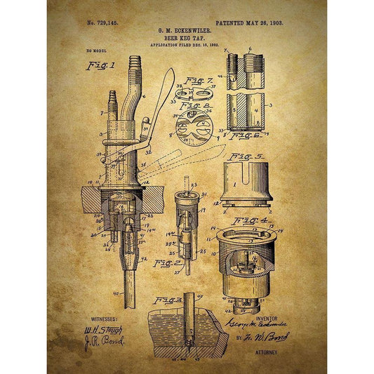Beer Keg Tap 1903 Black Modern Wood Framed Art Print by Sproul, Dan