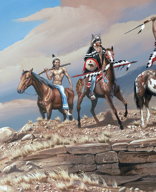 War Party II Black Modern Wood Framed Art Print by Unknown