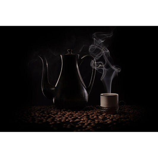 Black Coffee Black Modern Wood Framed Art Print by Perfoncio, Margareth