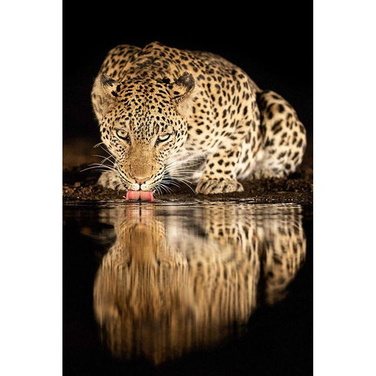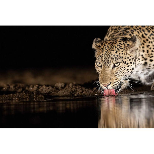 Wariness At The Water Hole Black Modern Wood Framed Art Print by C. Sink, Jeffrey