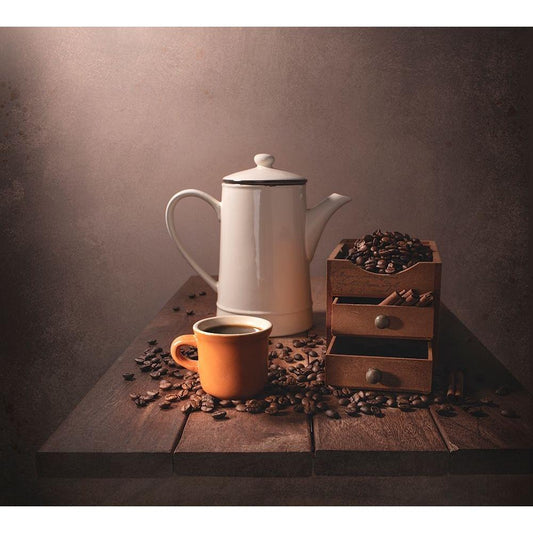 Coffee Time Black Modern Wood Framed Art Print by Anton, Rostovskiy