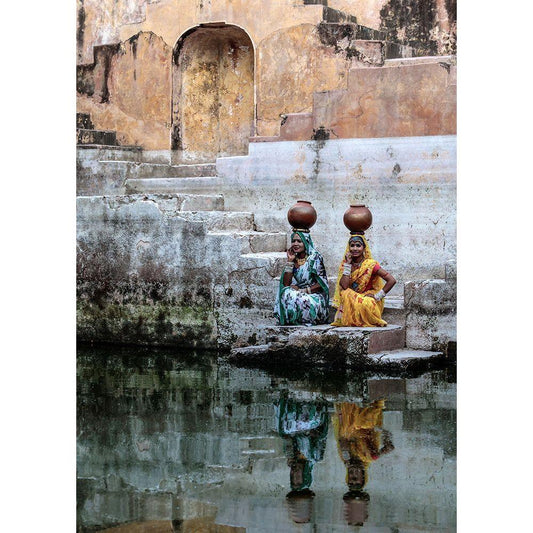 Stepwell Reflections Black Modern Wood Framed Art Print by Moss, Susan