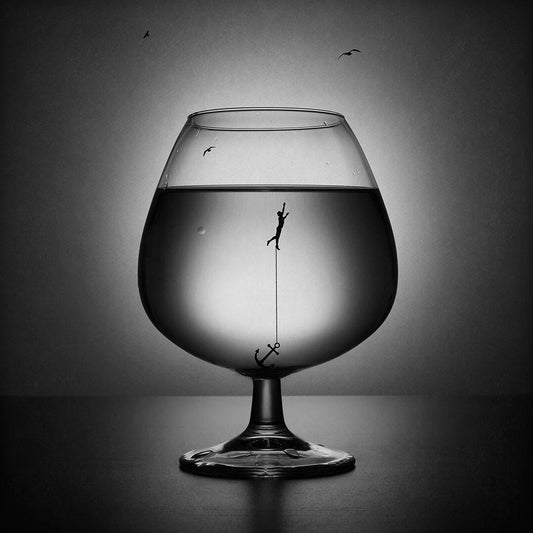 Alcoholism. The Drowning Black Modern Wood Framed Art Print by Ivanova, Victoria