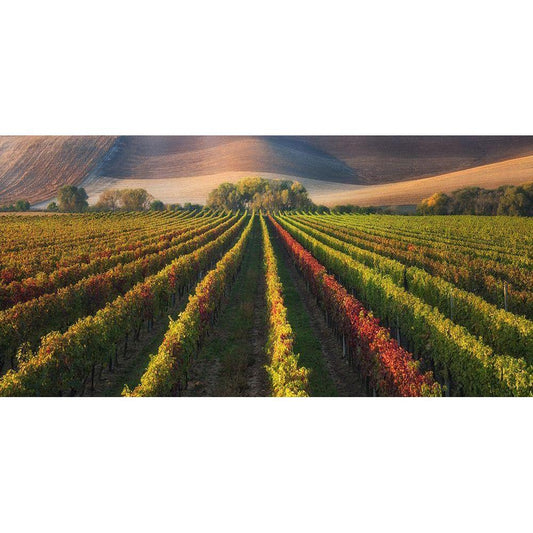 Vineyard In Autumn Black Modern Wood Framed Art Print by Komovec, Ales