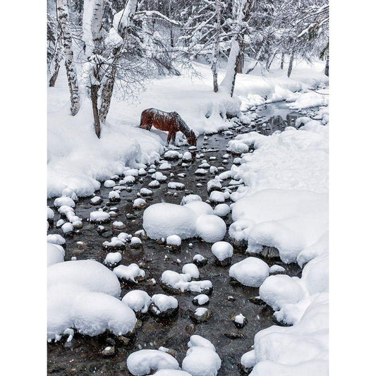Drinking In Snow Black Modern Wood Framed Art Print by Zhu, Hua