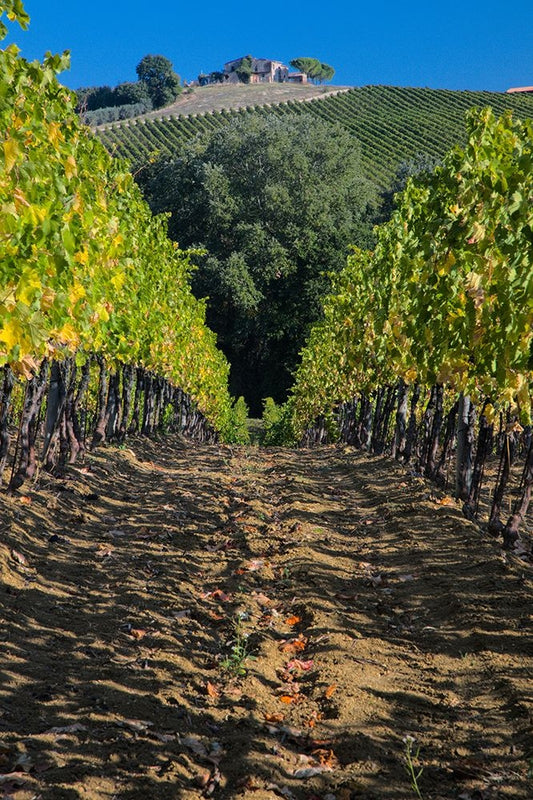 Italy- Umbria. Home surrounded by vineyards. Black Modern Wood Framed Art Print by Eggers, Julie