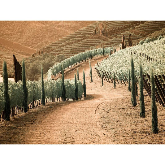 Portugal-Douro Valley-Backcountry road through the vineyards Black Modern Wood Framed Art Print by Eggers, Terry