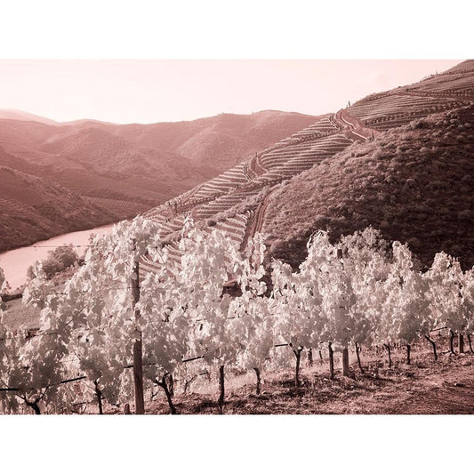 Portugal-Douro Valley-Terraced vineyards lining the hills Black Modern Wood Framed Art Print by Eggers, Julie