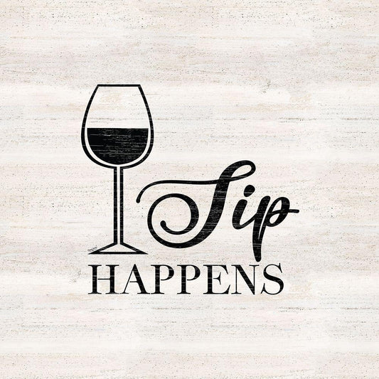 Wine Humor III-Sip Happens Black Modern Wood Framed Art Print by Reed, Tara